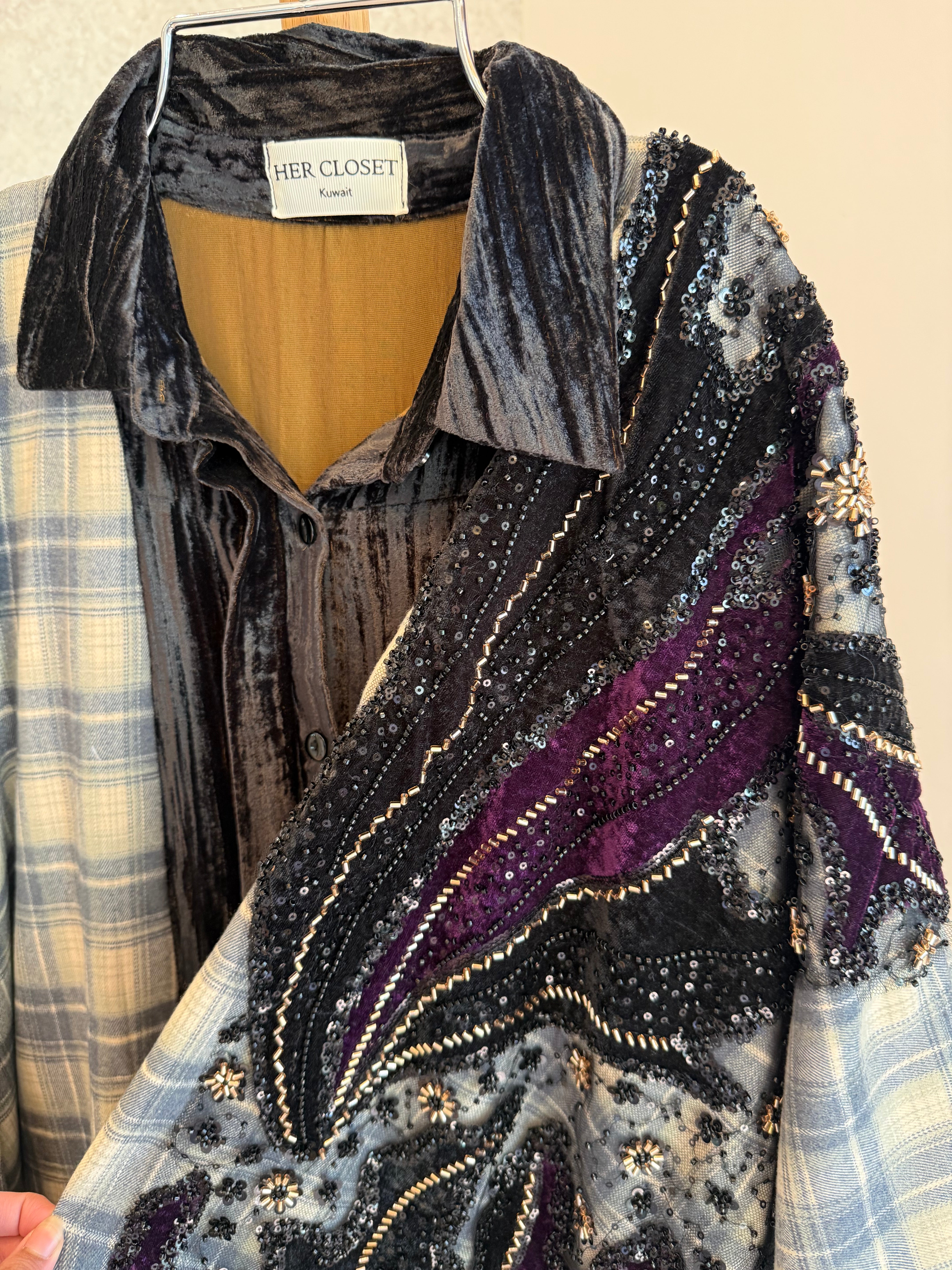 قطعتين مخيطين ببعض - بشت مطرز و نفنوف مخمل سترتج